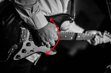 - Alavanca: Use o corpo da guitarra a seu favor. Puxe levemente o braço da guitarra contra o corpo com o braço direito, criando uma pressão natural que ajuda o indicador a apertar as cordas sem sobrecarregar o polegar.