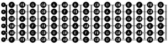 Veja abaixo todas as notas na guitarra em cada corda até a 12ª casa: